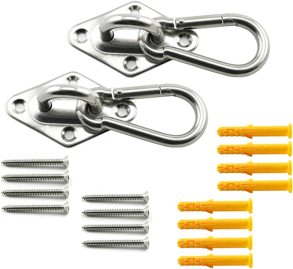 Price review Lind Kitchen 2 Set M8 Ceiling & Wall Mount Hanging Hardware Fitting Set 304 Stainless Steel Heavy Duty Diamond Pad Eye Hook Plate + Snap Hook for Yoga Hammock Chair Marine Boat Accessories